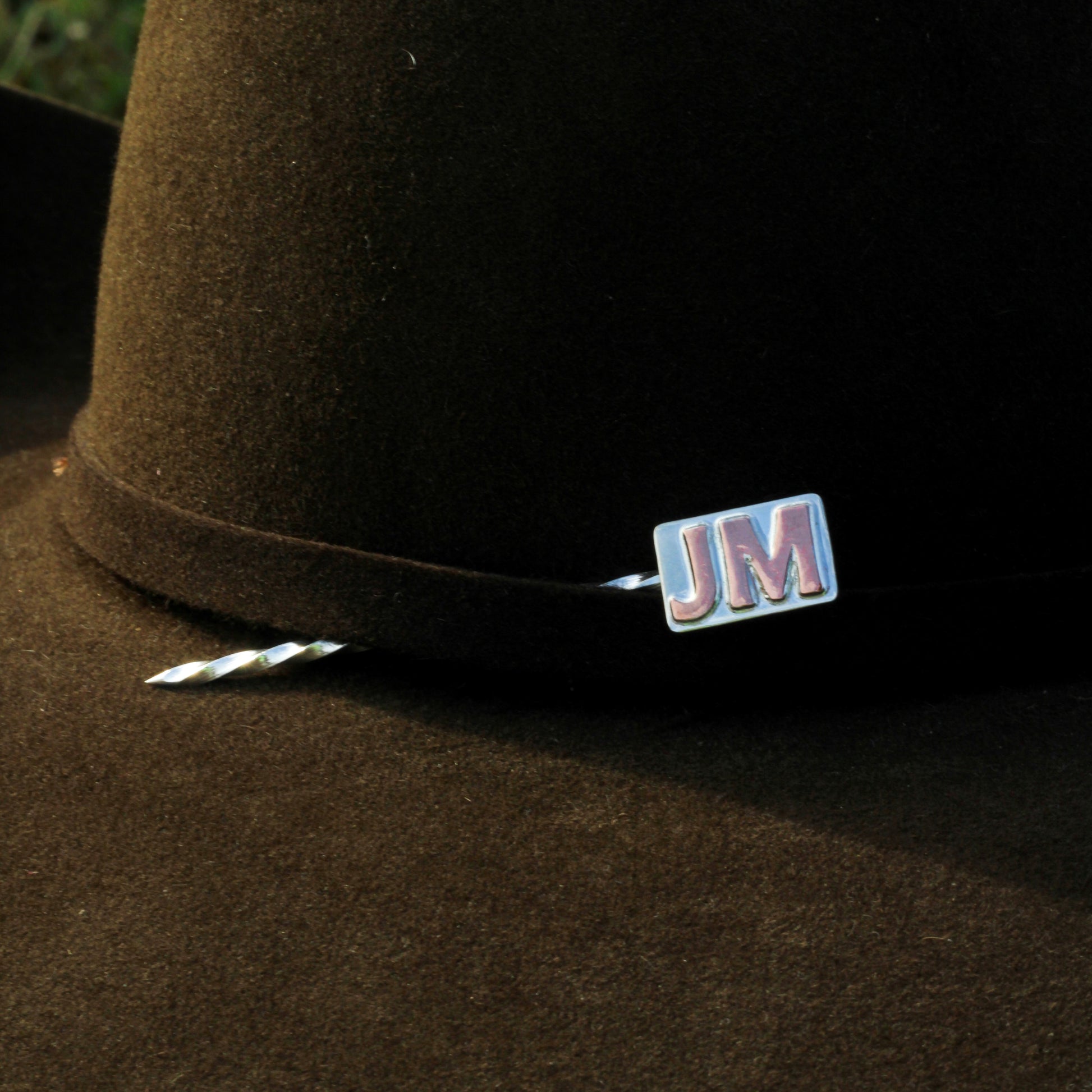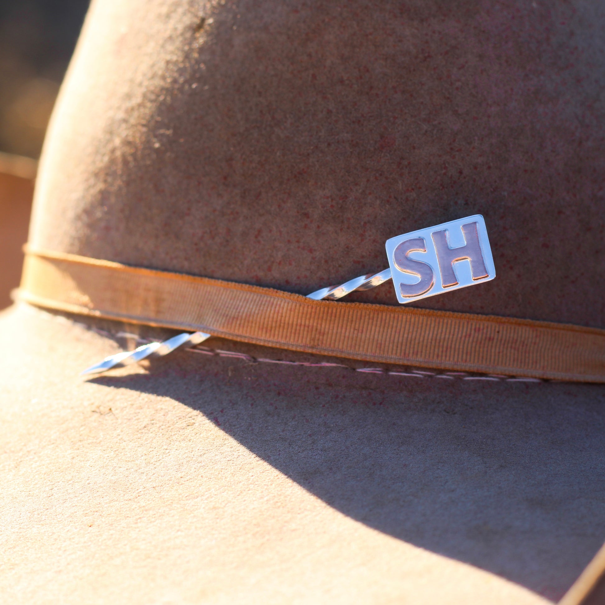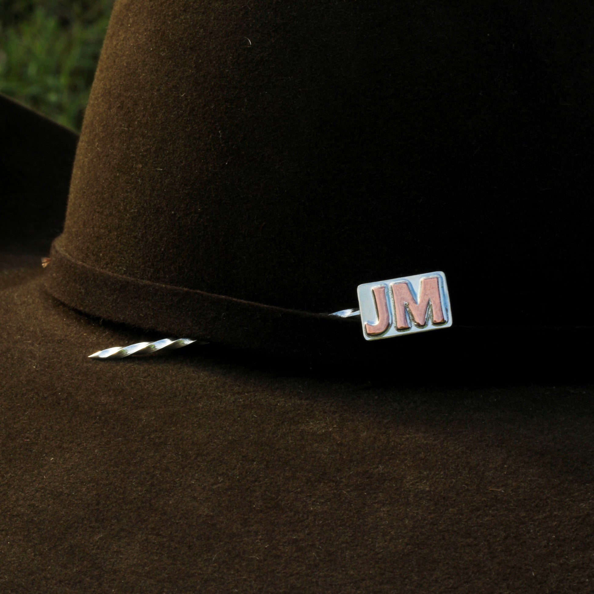 925 sterling silver hat picks with copper lettering custom made with 2 or 3 initials or customise with your cattle/horse brand.